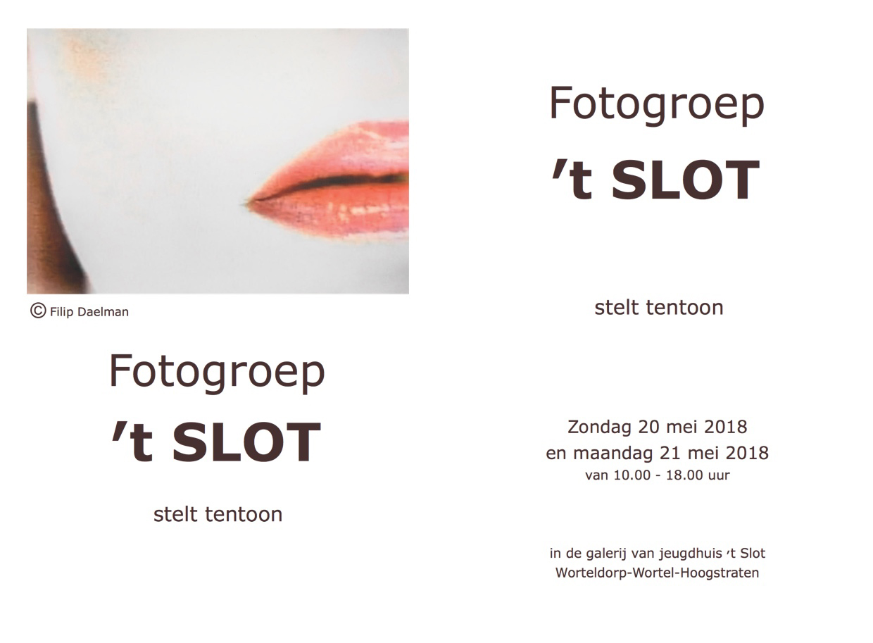 De jaarlijkse tentoonstelling van Fotogroep 't Slot voor 2018 vond plaats op zondag 20 mei en maandag 21 mei in de lokalen van Jeugdhuis 't Slot te Wortel.